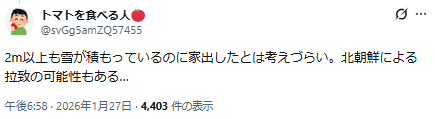 ネットでは、突然行方不明になるなんて拉致されたのでは?と不安視する声もありました。
