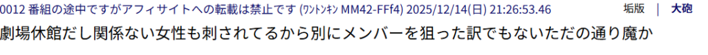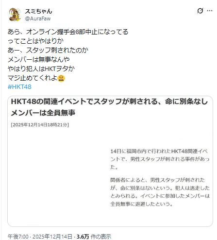 - HKT48劇場刺傷事件の犯人はオタク説