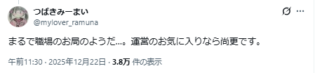 まるで職場のお局のようだ…。運営のお気に入りなら尚更です。