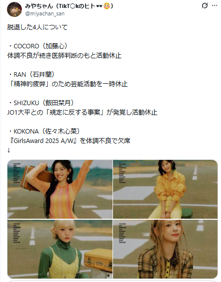 またME:Iから4人同時に辞めるなんておかしい!との声が多数上がっています。