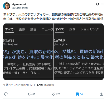 しかしなんらかの理由で、2024年12月には代表取締約を辞任していました。その後は中村 拓歩(なかむら たくほ)氏が代表取締役に就任。2人は現在もビジネスパートナーだそう。(集英社オンラインより)