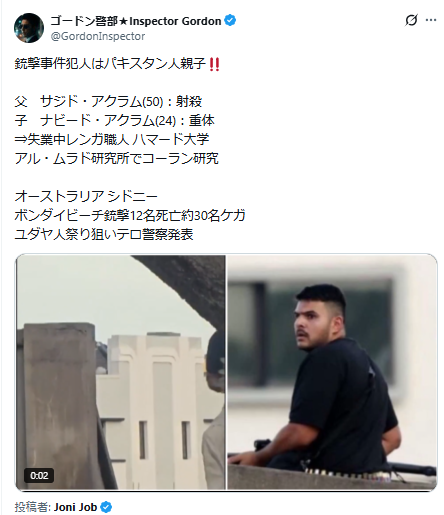 オーストラリアのボンダイビーチで起きた悲惨な銃撃事件の犯人は、パキスタン人の親子でした。